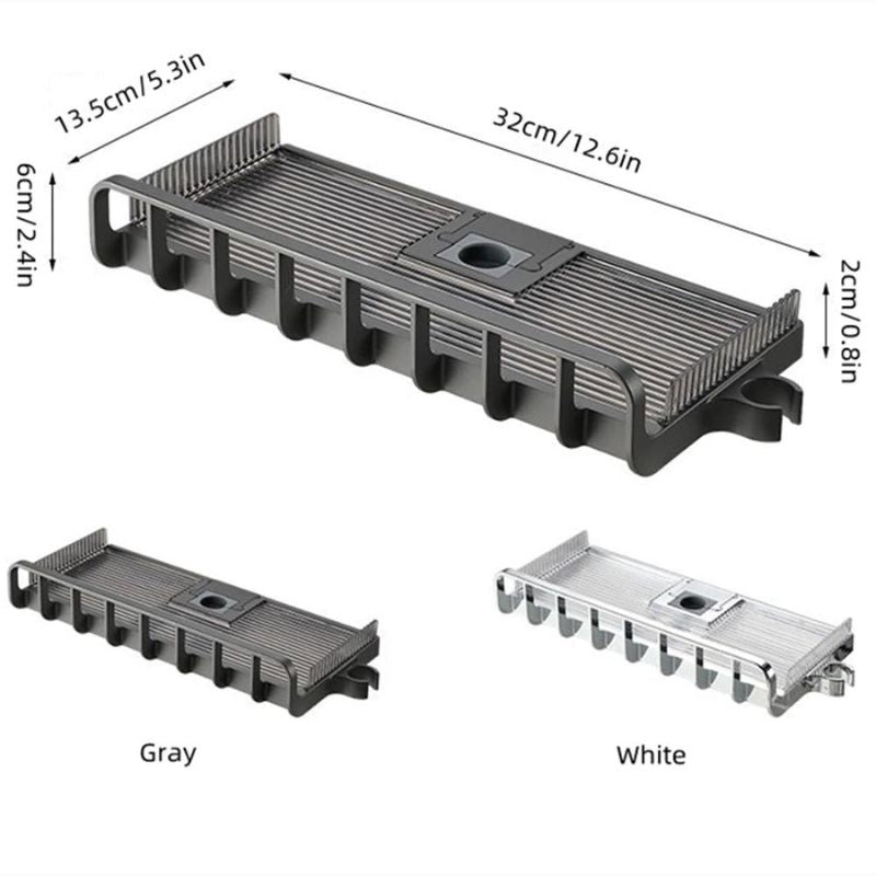 Denna tvålkopp är mer än bara en förvaringsplats för din tvål. Dess genomtänkta design med dräneringshål säkerställer att överflödigt vatten snabbt rinner bort, vilket håller din tvål torr och hygienisk. Inga mer slemmiga tvålar! Tillverkad av hållbart material är den byggd för att tåla fuktiga badrumsmiljöer och bibehålla sitt stilrena utseende över tid. Dess justerbara fäste innebär att du enkelt kan placera den på önskad höjd på din duschstång, vilket gör den idealisk för alla i familjen, från de minsta till de längsta. Dessutom frigör den utrymme på hyllor och i nischer, vilket ger ditt badrum en renare och mer minimalistisk känsla.